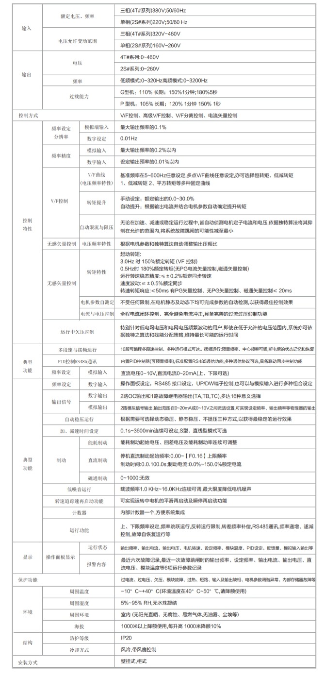 ●系列全機型采用集成IGBT模塊,性能更好,可靠性更高。