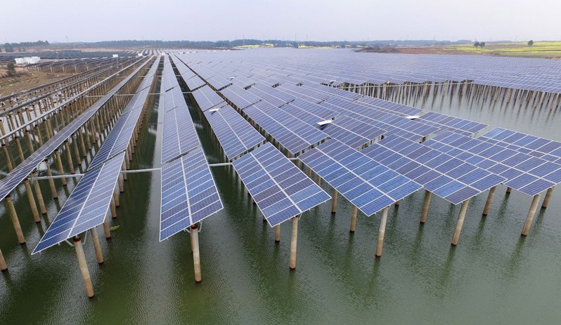 2.“漁光互補”是漁業(yè)文化與光伏發(fā)電的結(jié)合。魚塘水面上方設(shè)置光伏板陣列,光伏板下方水域可進(jìn)行魚蝦養(yǎng)殖。光伏陣列還能為養(yǎng)魚提供良好的屏蔽效果,形成“上發(fā)電、下養(yǎng)魚”的發(fā)電新模式,可實現(xiàn)養(yǎng)殖與發(fā)電并行,提高綜合產(chǎn)值。