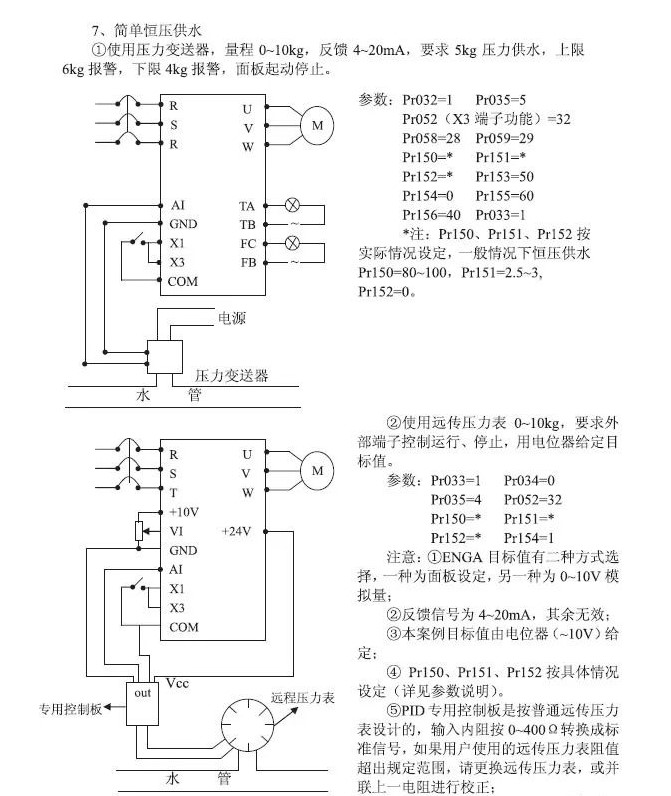 變頻恒壓供水接線方法: